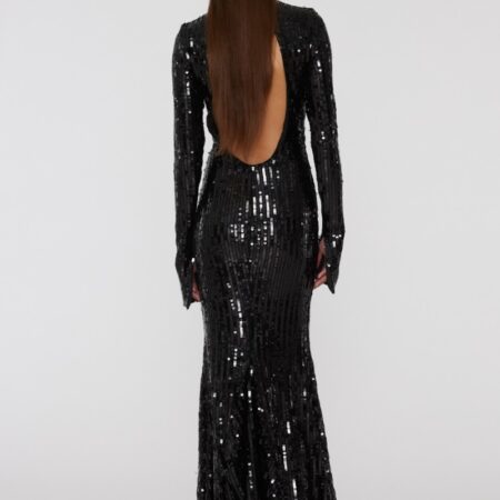 Rent From €100.00SEQUIN MAXI DRESS IS AN ELEGANT MAXI DRESS. THIS DRESS HAS A SEQUIN FABRIC WITH A LONG AND ELEGANT SILHOUETTE, AND FEATURES AND OPEN BACK