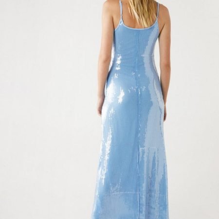 Rent From €100.00Coated in sequins, this maxi dress from Rotate Birger Christensen is a halter neck design with an open back and a streamlined silhouette. material: 95% recycled polyester, 5% elastane material II: 100% recycled polyester lining: 95% polyester, 5% elastane care instructions: dry clean buttoned back Sizing: True to size Low […]