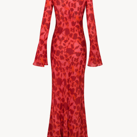 Rent From €80.00Full length maxi dress with long bell sleeves Boat neckline Bias cut No lining Slip on style, without a zip Should be worn with nude coloured underwear Suitable for wearing a bra Original tonal red floral ’Havana’ print designed by Réalisation Sizing is considered standard Note: Prices shown are daily […]