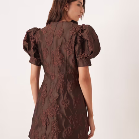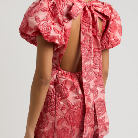 Rent From €60.00Sister Jane cloqué dress Floral jacquard, round-neck, gathered shoulders, puff sleeves, elasticated cuffs, elasticated open back, fully lined Tie fastening at back 100% polyester