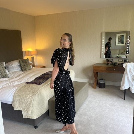 In a vintage styled aesthetic the Noon Polka Dot Dress from rotate. Perfect for formal attire from wedding guest to racing attire. Designed with short puff sleeves, high gathered neckline, rear tie fastening with elasticated shirring to the back and tonal stitching throughout. This piece is finished off with a […]